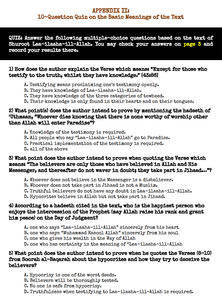 We are pleased to announce that our latest publication is now available: Conditions Required by One’s Testimony of Laa-ilaaha-ill-Allah (Workbook)